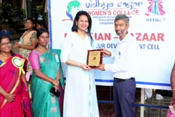 Empowering young entrepreneurs, Vidhya Sagar Women’s College presents Manthan Bazaar every year. October 10, 2024, marked the successful hosting of Manthan Bazaar, the annual entrepreneurial showcase, at Bhagwan Mahaveer Swami Auditorium. Smt. Kirti Jain, Chief Financial Officer of Global Healthcare Resource, inaugurated the event as the esteemed Chief Guest. In her keynote address, she emphasized the significance of handicrafts in empowering women to enhance their standard of living, fostering entrepreneurship, self-confidence, and resilience. This year’s Manthan Bazaar showcased the entrepreneurial spirit of the students, with approximately 40 stalls offering a diverse range of products and services, including delectable food, fashionable accessories, clothing, engaging games, and exquisite handicrafts. The occasion was further graced by the presence of Shri. Vikas Surana, Correspondent of Vidhya Sagar Institutions, Dr.R. Arunadevi, Principal of Vidhya Sagar Women’s College. The best stall was recognized with the prestigious Best Iconic Entrepreneurial Award, while the Chief Guest announced the lucky draw winner, adding an element of excitement to the event. The programme ended with the National Anthem.