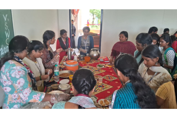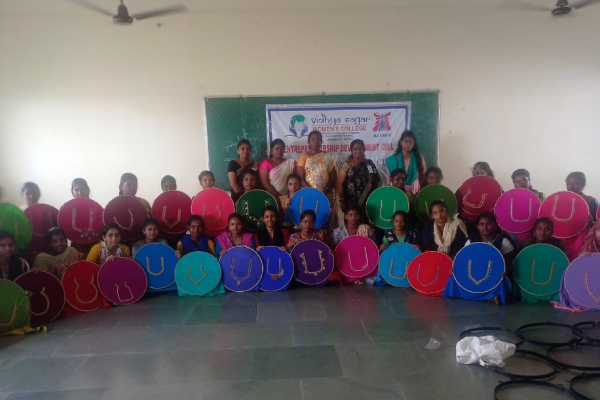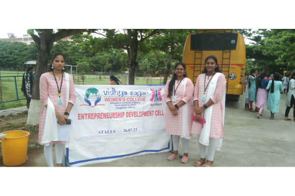 During the STU investiture on 26.07.2023, ED cell of Vidhya sagar women’s college organized stalls. Around 10 stalls were presented by our students. Stalls like food items, bakery items ,mehandi, fancy items, dress materials and herbal products were arranged by the students. All students and staffs of VSWC showed lot of interest in buying the products and gave positive feedback.