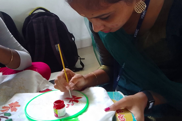 ED cell of Vidhya sagar women’s college organized a skill based Workshop in Fabric Painting by Mrs.SHYAMALA DEVI,FEVICRYL –PIDILITE INDUSTRIES on 31.08.2023 and 01.09.2023 between 9.30 am to 3.00 pm at Bhagawan Aadhinath Auditorium. Around 80 students participated and got benefitted.