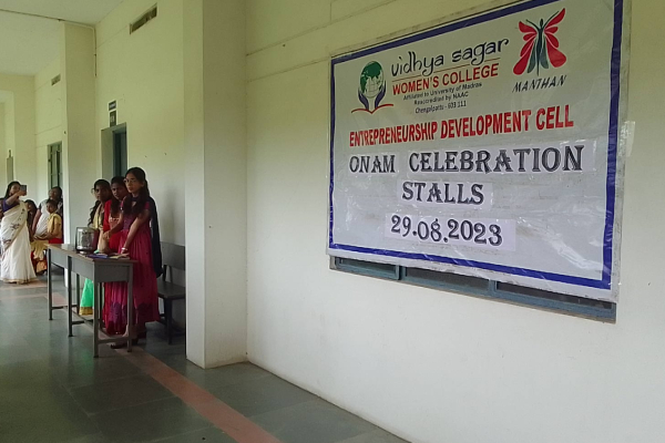 During the Onam Celebration on 29.08.2023, ED cell of Vidhya sagar women’s college organized stalls. Around 6 stalls were presented by our students. Stalls based on kerela food items were arranged by the students.