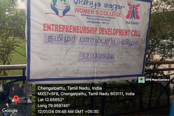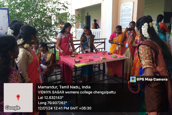 ED cell of Vidhya sagar women’s college organized stalls on 12.01.2024 for Pongal Celebration in the college around 7 stalls were presented by our students. Stalls like traditional Food items, Dress, Mehandi, Game stall were arranged by the students. All students and staffs of VSWC showed lot of interest in buying the products.