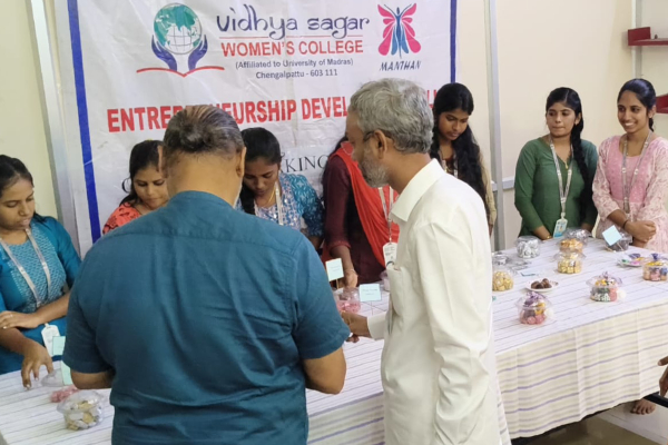 ED cell of Vidhya sagar women’s college organized stalls on 17.02.2024 on the occasion of college Annual Day celebration. Around 3 stalls were presented by our students, Stalls like chocolate stall and food stalls dress materials were arranged by the students. All students and staffs of VSWC showed lot of interest in buying the products.