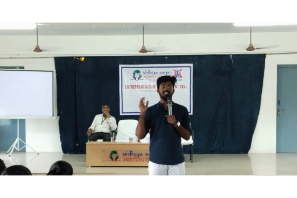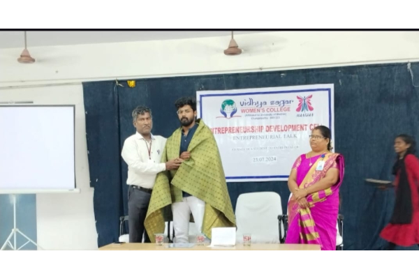 The Entrepreneurship Development Cell of vidhya sagar women’s college, has organized Entrepreneurial Talk “JOURNEY OF A STUDENT TO ENTREPRENEUR” on 23/07/2024 by Resource person Mr.Eswar R M. Ideology Entrepreneur and the founder people’s Listener.