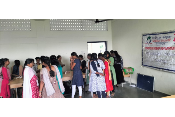 ED cell of Vidhya sagar women’s college organized stalls on 10.02.2024 on the occasion of School Annual Day celebration. Around 3 stalls were presented by our students, Stalls like chocolate stall and food stalls were arranged by the students. All students and staffs of VSEI showed lot of interest in buying the products.