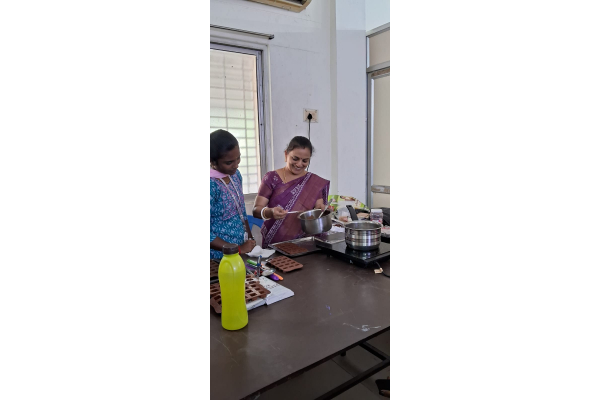 The Entrepreneurial Development Cell in VSWC organized a five-day workshop on “Chocolate Making”. Mrs. Julie, Instructor, KVIC, conducted the class from January 06, 2025 to January 10, 2025 at MS 78 and MS 79.Totally 32 students learned the art of tempering chocolate to achieve the perfect smooth texture and glossy finish. The most engaging part of the workshop was the hands-on activity. Where each participant made their own bath of chocolate, experimenting with different flavors like nuts, fruit, and spices. This will help the students to earn their own income.