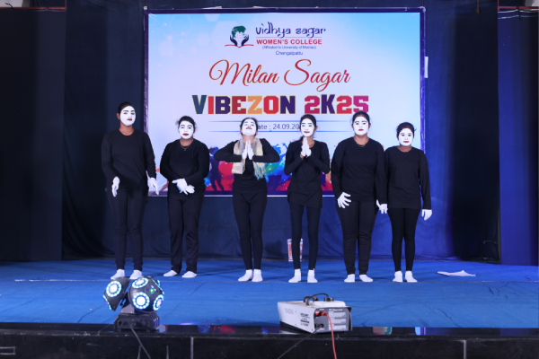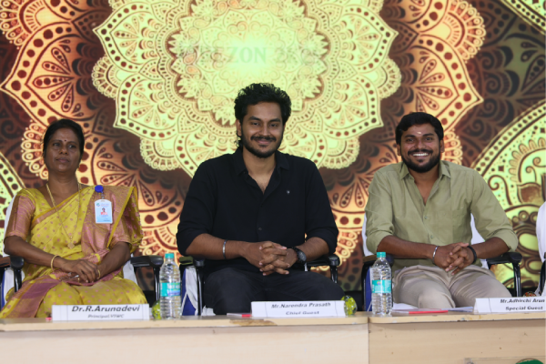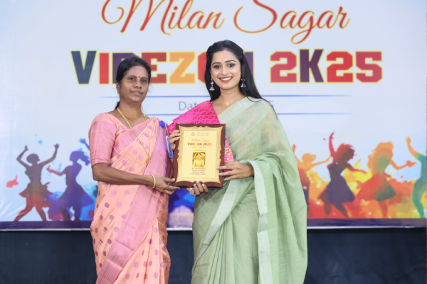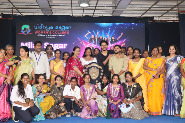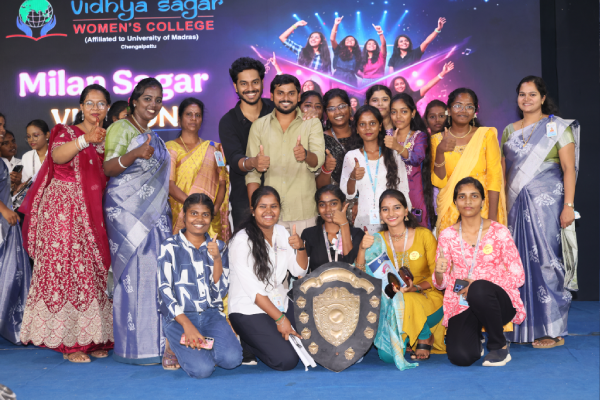 Vidhya Sagar Women’s College hosted the vibrant cultural extravaganza, Milan Sagar Vibezon on September 24th and 25th , 2025. The event welcomed a renowned actor Mr.Narendra Prasath, who served as the Chief Guest, Mr.Adhirchi Arun, actor and Ms. Suchitra, a renowned alumna of Vidhya Sagar Women’s College and popular serial actress on Zee Tamizh were the Special Guests. Mr. Prasath praised the students’ outstanding performances and encouraged them to utilize such platforms to discover their hidden talents. These inspiring personalities collectively motivated students to pursue cultural activities, promoting creativity, confidence, and holistic development. Following this, prizes were distributed to the students who had excelled in various cultural competitions by the esteemed guests. The Department of Commerce proudly lifted the overall championship trophy. The event was graced by the Principal Dr. R. Arunadevi faculty members, and students. The celebration wrapped up with the National Anthem.