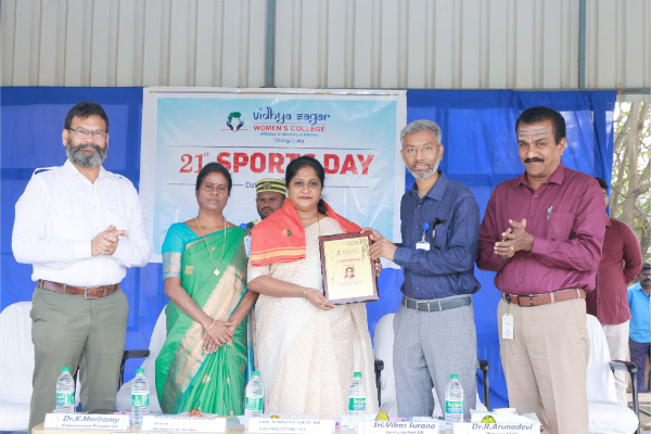 Vidhya Sagar Women’s College celebrated its 21st Annual Sports Day with great enthusiasm and sporting spirit on December 30, 2025. The event was inaugurated by Shri S. Malathi Helen IAS, Sub Collector, Chengalpattu, who honored the occasion as the Chief Guest. The Valedictory Function was graced by Dr. S. Utham Kumar Jamadhagni, Dean i/c, College Development Council, University of Madras, Chennai. The Chief Guests emphasised that students should prioritise fitness, build mental grit, stay active, and cultivate leadership and sportsmanship skills. The programme commenced with an impressive house-wise students’ parade, reflecting discipline, unity, and team spirit among the participants. This was followed by the ceremonial lighting of the Olympic Torch by the Sports President, Ms. Minam Thamang. The Annual Report of the Sports Department was presented by Mrs. S. Sangeetha, Physical Directress of VSWC, highlighting the college notable achievements and active participation in various sports events throughout the academic year. A wide range of sports competitions, including Yoga and Karate, were conducted, showcasing students’ athletic talent and competitive spirit, with nearly 500 students awarded medals, certificates, and Sports Scholarships for their outstanding performances. Ms. D. Pathipooranam, student of II B.Com B, received the Individual Achievement Shield, while Annu Rani House was awarded the Overall Championship Shield for their exceptional achievements in sports. The programme was presided over by Shri.Vikas Surana, Correspondent of Vidhya Sagar Institutions, Dr. R. Arunadevi, Principal, Vidhya Sagar Women’s College and Dr.K.Marisamy, Empowerment Principal who congratulated the winners and encouraged students to pursue excellence in all spheres of life. The event concluded with the National Anthem, leaving the gathering with a sense of pride, unity, and sportsmanship.