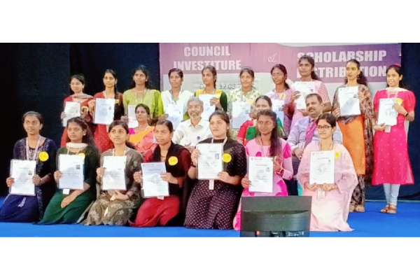 Vidhya Sagar Women’s College, Chengalpattu, celebrated a momentous occasion with the Students’ council Investiture Ceremony organized by Student Council, held in Bhagwan Mahaveer Swami Auditorium on August 12, 2025. The ceremony aimed to recognize the new student representatives for the academic year and acknowledge the dedication of the previous year’s office bearers. Mrs. K. PARVEEN FATHIMA, Senior Vice-President and Cluster Head of Axis Bank delivered an inspiring keynote address, urging students to hone their skills and intensify their determination to achieve excellence. The event featured the introduction of the Students’ Council Office Bearers, who received badges, and the distribution of merit scholarships to 82 top-performing students who excelled in the April 2025 University Examination. These scholarships provide vital financial support, encouragement, and recognition, empowering students to pursue academic distinction with confidence. Shri.Vikas Surana, Correspondent of Vidhya Sagar Institutions, Dr. R.Arunadevi, Principal of Vidhya Sagar Women’s College graced the occasion with their presence.