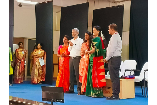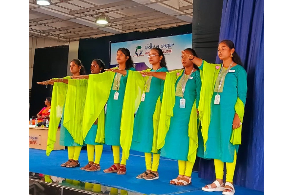 Vidhya Sagar Women’s College, Chengalpattu, celebrated a momentous occasion with the Students’ council Investiture Ceremony organized by Student Council, held in Bhagwan Mahaveer Swami Auditorium on August 12, 2025. The ceremony aimed to recognize the new student representatives for the academic year and acknowledge the dedication of the previous year’s office bearers. Mrs. K. PARVEEN FATHIMA, Senior Vice-President and Cluster Head of Axis Bank delivered an inspiring keynote address, urging students to hone their skills and intensify their determination to achieve excellence. The event featured the introduction of the Students’ Council Office Bearers, who received badges, and the distribution of merit scholarships to 82 top-performing students who excelled in the April 2025 University Examination. These scholarships provide vital financial support, encouragement, and recognition, empowering students to pursue academic distinction with confidence. Shri.Vikas Surana, Correspondent of Vidhya Sagar Institutions, Dr. R.Arunadevi, Principal of Vidhya Sagar Women’s College graced the occasion with their presence.